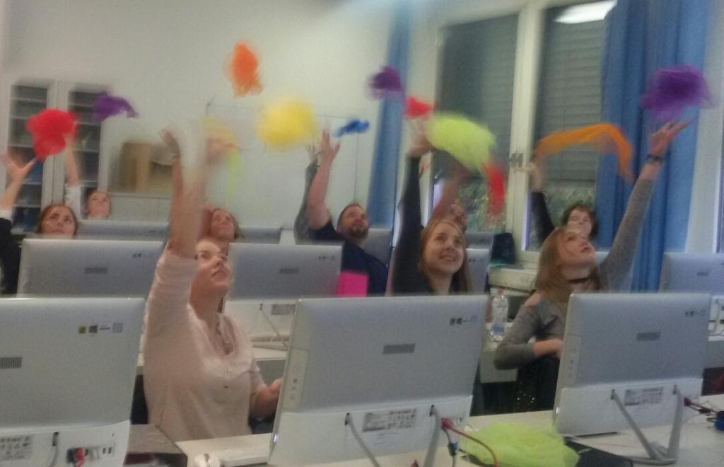 Fingergymnastik schult die Motorik, lockert Verspannungen und fördert sogar die Denkfähigkeit! Studierende des 1. Ausbildungsjahres entwickelten heute interessante und wertvolle Übungen mit Tüchern, die im Unterricht des Tastschreibens ab der 5. Jahrgangsstufe eingesetzt werden können.