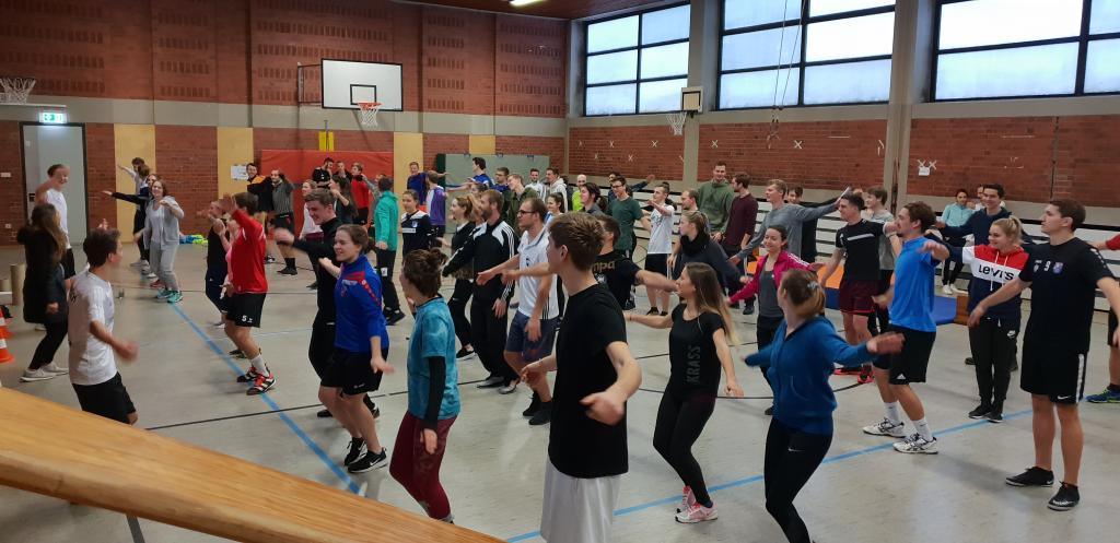 Mittlerweile ist es schon Tradition, dass die Sport-Päd-Klassen für alle Sportgruppen des IFL unter der Leitung von Herrn Mayer eine Veranstaltung unter sportlichem Vorzeichen organisieren. So mussten sich die über alle Jahrgangsstufen hinweg zusammen gelosten Athleten in ihren Teamaufgaben beweisen. Nach einem gemeinsamen Aufwärmen galt es sich an den Stationen Rampenball, Ballschwingen, Sackwerfen, Staffelstab übergeben, Tic Tac Toe, Rohrball, Armbrustbiathlon, Nageln und Orangentransport zu messen. Auch die Schätzfragen trugen zur guten Stimmung bei. Nach der Siegerehrung stärkten sich die Studenten im Atrium mit heissen Wienersemmeln und in angenehmer Stimmung klang die gelungene Veranstaltung mittags aus.