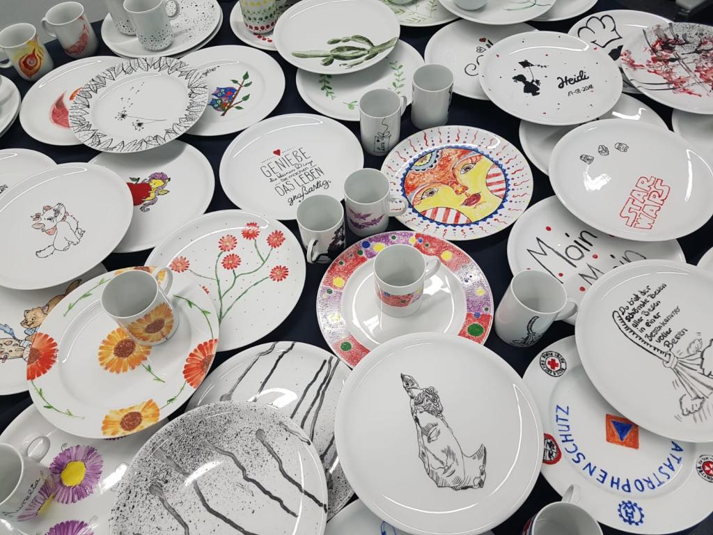 Unter der Leitung von Frau Renate Zeitler-Schilling fanden erneut zwei Kurse im Porzellanmalen statt. Jeder der zahlreich teilnehmenden Studierenden konnte Teller und Becher individuell gestalten. Die Vielzahl der gelungenen Objekte spricht für sich und rechtfertigt den damit verbundenen Aufwand. Sicher nicht die letzte Veranstaltung dieser Art! :)