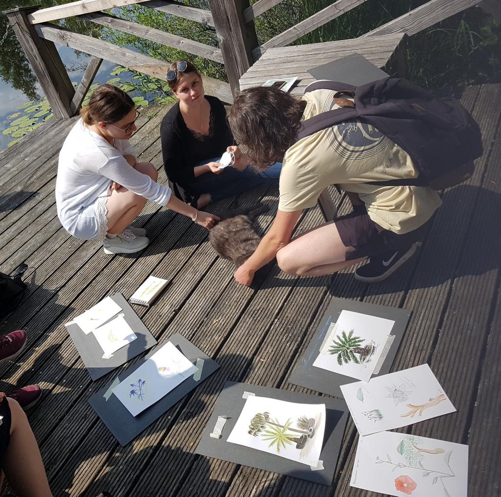 Zur abschliessenden Kurzpräsentation, der im Rahmen des Kunstunterrichts entstandenen Werke der Studierenden, gesellte sich - wie selbstverständlich - eine Katze. Auch sie schien die Zeit in dieser wunderbaren Umgebung (und die Streicheleinheiten) zu geniessen.