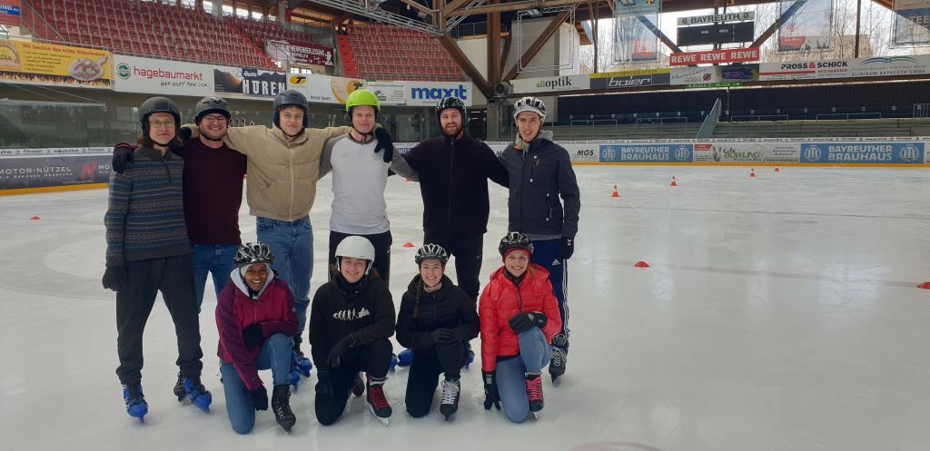 Im Rahmen der Sportausbildung ging die P1 unter der Leitung von Herrn Mayer in das städtische Eisstadion Bayreuth. Zentrale Aspekte der Veranstaltungen waren einerseits die praktische Vermittlung von sicherheitsrelevanten Inhalten (KUVB) beim Eislaufen mit Schülergruppen als auch die spielerische Schulung von Eislauf im Anfängerbereich.