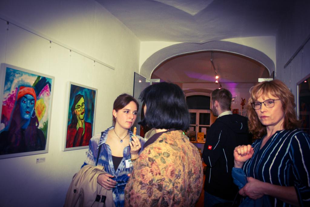 Gut 100 begeisterte Besucher drängten sich am 9. März in die Stadtbücherei Kemnath, um der Ausstellungseröffnung des Projektes #nahbar-Mensch beizuwohnen. Zur Ausstellungseröffnung sprachen Bürgermeister Schäffler und der stellv. Institutsleiter Schubert. Die Dozentin Steffanie Nickl bedankte sich bei allen Mitwirkenden des Ausstellungsteams. Nickls Idee führte zum Ausstellungsprojekt in Kemnath. Ihre Freundschaft mit dem Kemnather Künstler Rainer Sollfrank ermöglichte das einzigartige Ausstellungsprojekt. Der Fachbereichsleiter Kunst am Staatsinstitut, Sebastian Waßmann führte in die Ausstellung ein und lobte das besondere Engagement aller Beteiligten. "Gerade in Zeiten, in denen sich Menschen bekriegen, muss die Kunst ein Statement setzen - dies ist hier gelungen. Die Kunst hat die Aufgabe Perspektiven aufzuzeigen", so Waßmann. Die Ausstellung fand eine Erweiterung im neuen Kulturcaf� Alte Druckerei. Hier strömten im Anschluss an die Vernissage alle Beteiligten und feierte bei der After-Opening-Party die Kunst und Kultur. Jonas Baker faszinierte mit Gitarre und Gesang bei der Veranstaltung und sorgte für Begeisterung. Die Ausstellung kann bis 27. Juni 2023 in der Stadtbibliothek und im Kulturcaf� besucht werden. SW