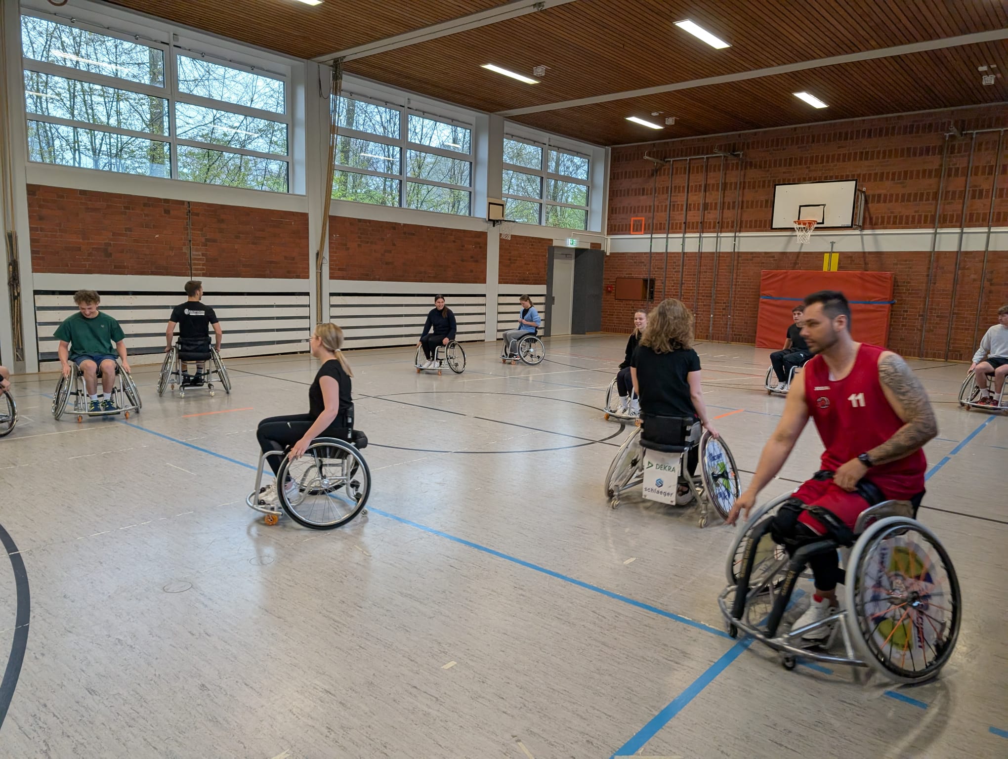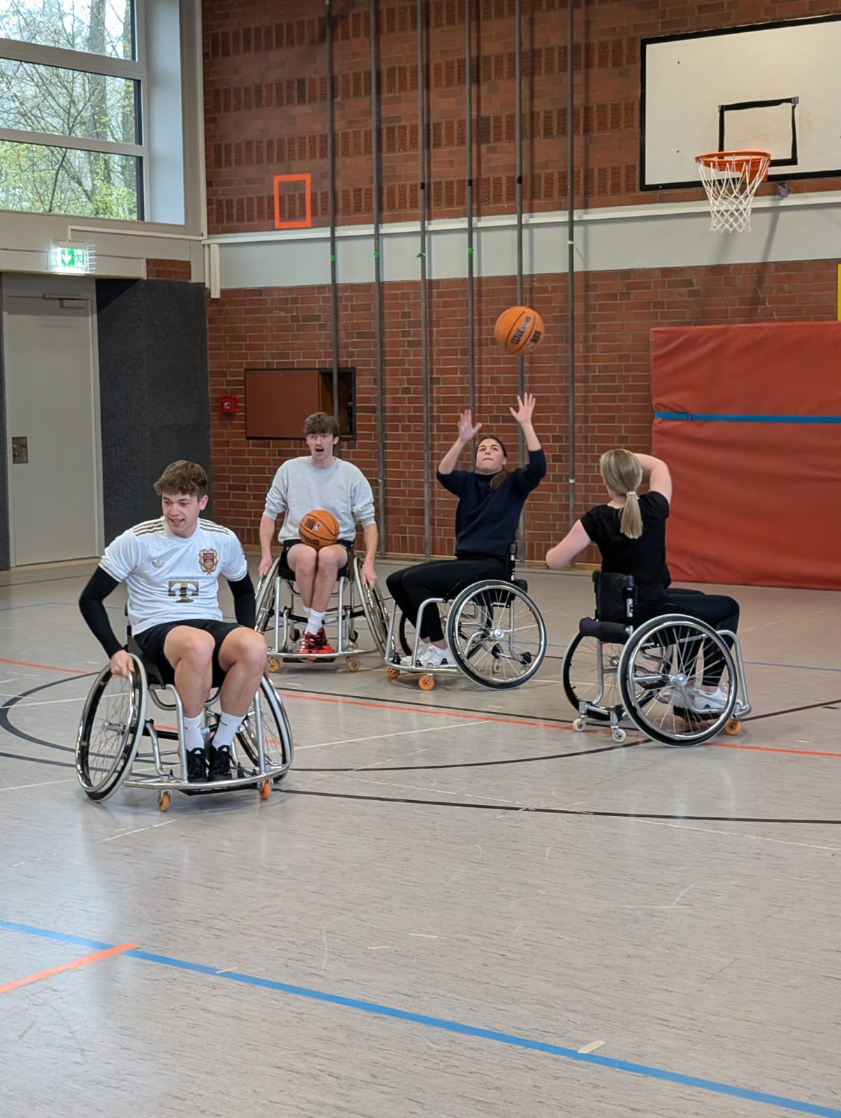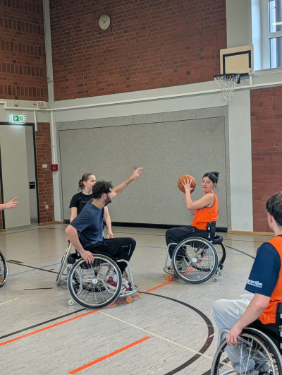 Unsere Sportstudierenden der P- und C-Gruppen hatten die Gelegenheit, sich 90 Minuten lang selbst im Rollstuhl auszuprobieren und grundlegende Techniken kennenzulernen. Dabei wurde schnell deutlich, wie anspruchsvoll diese Sportart ist und wie viel Koordination, Kraft und Teamarbeit sie erfordert.