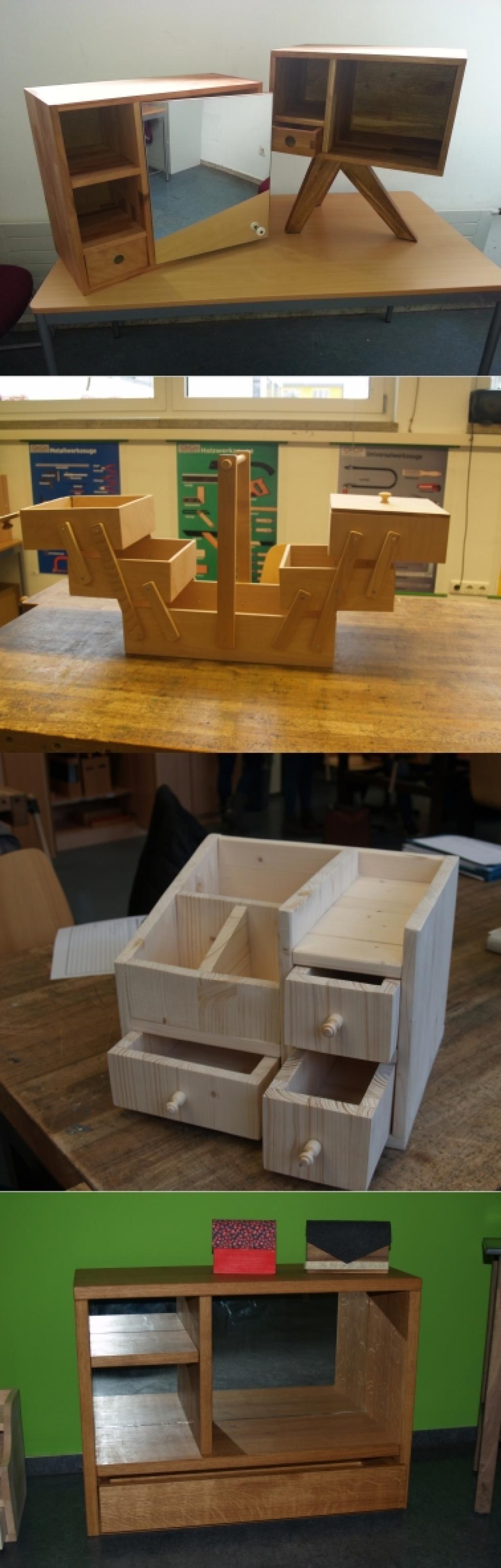 Im Rahmen einer Projektarbeit im Fachbereich Werken/Technik haben 58 Studierende des 3. Studienjahrgangs individuelle Holz-Möbel angefertigt.